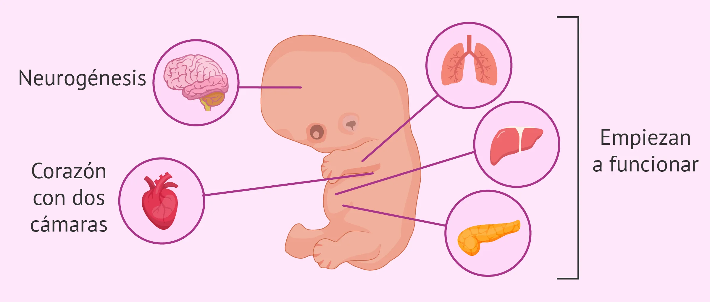 - Después de la octava semana empieza la etapa fetal (9 semanas hasta el nacimiento), la cual termina en con el parto.